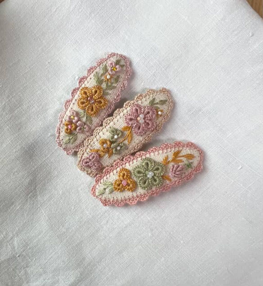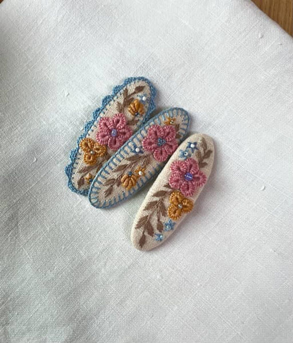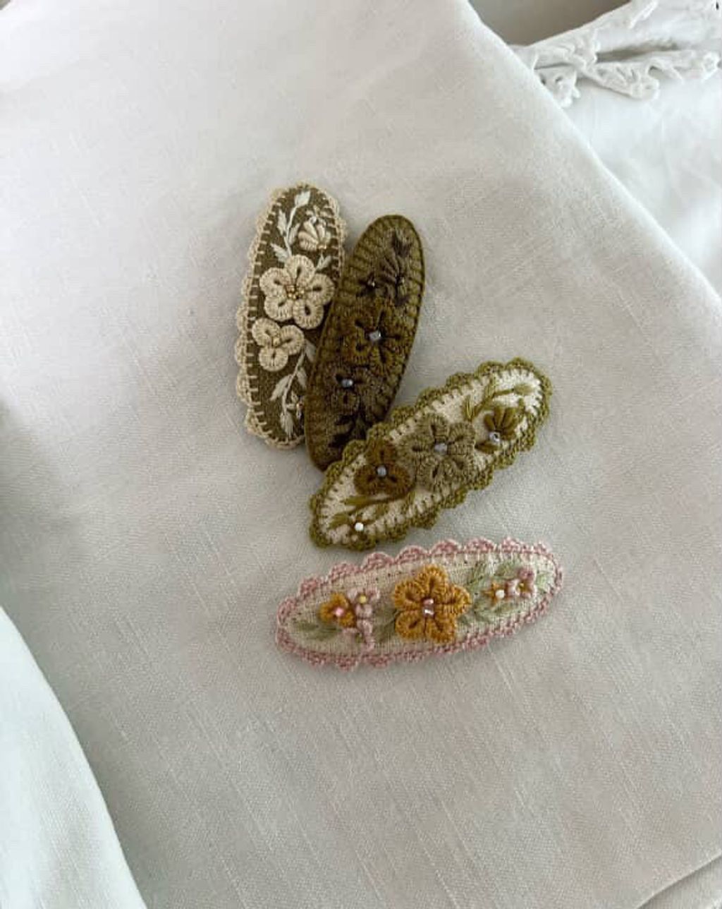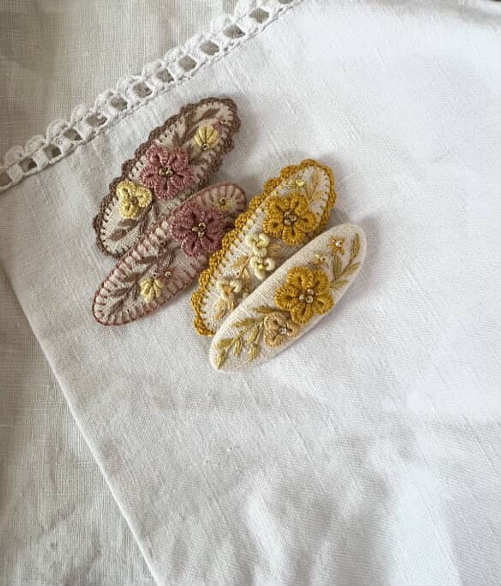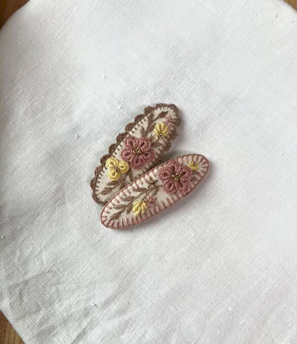 angela_bon - 布刺繡橢圓髮夾 New ✨:aw25
