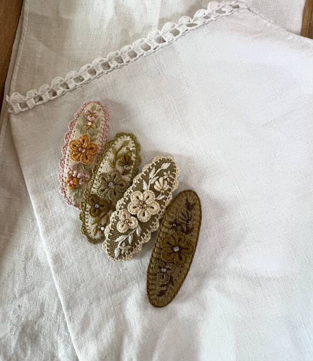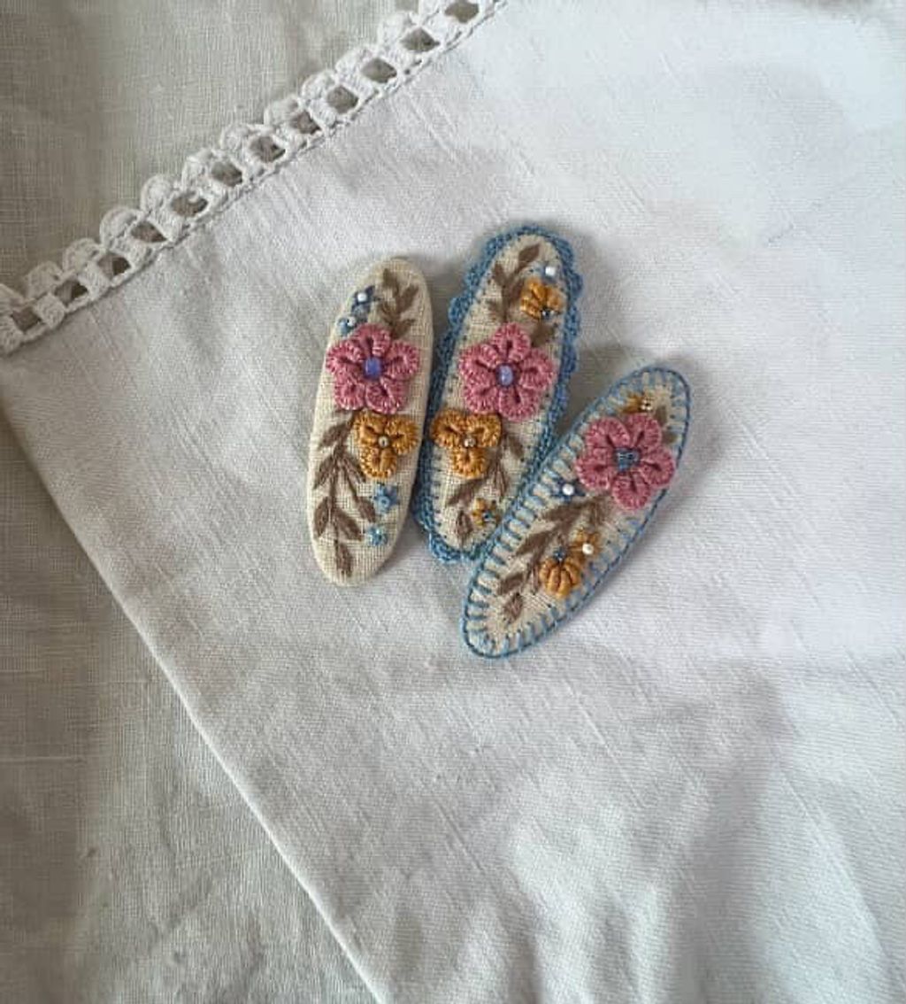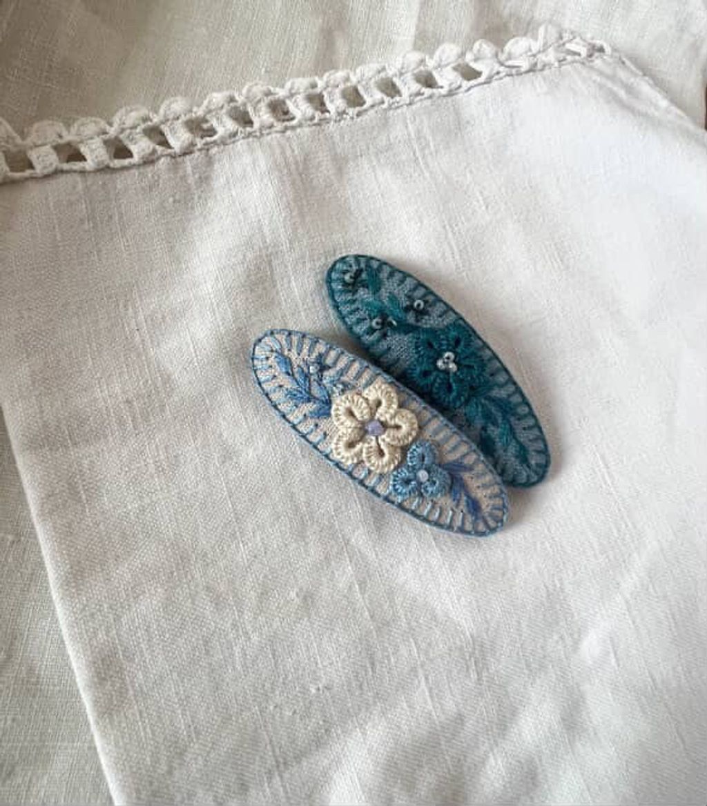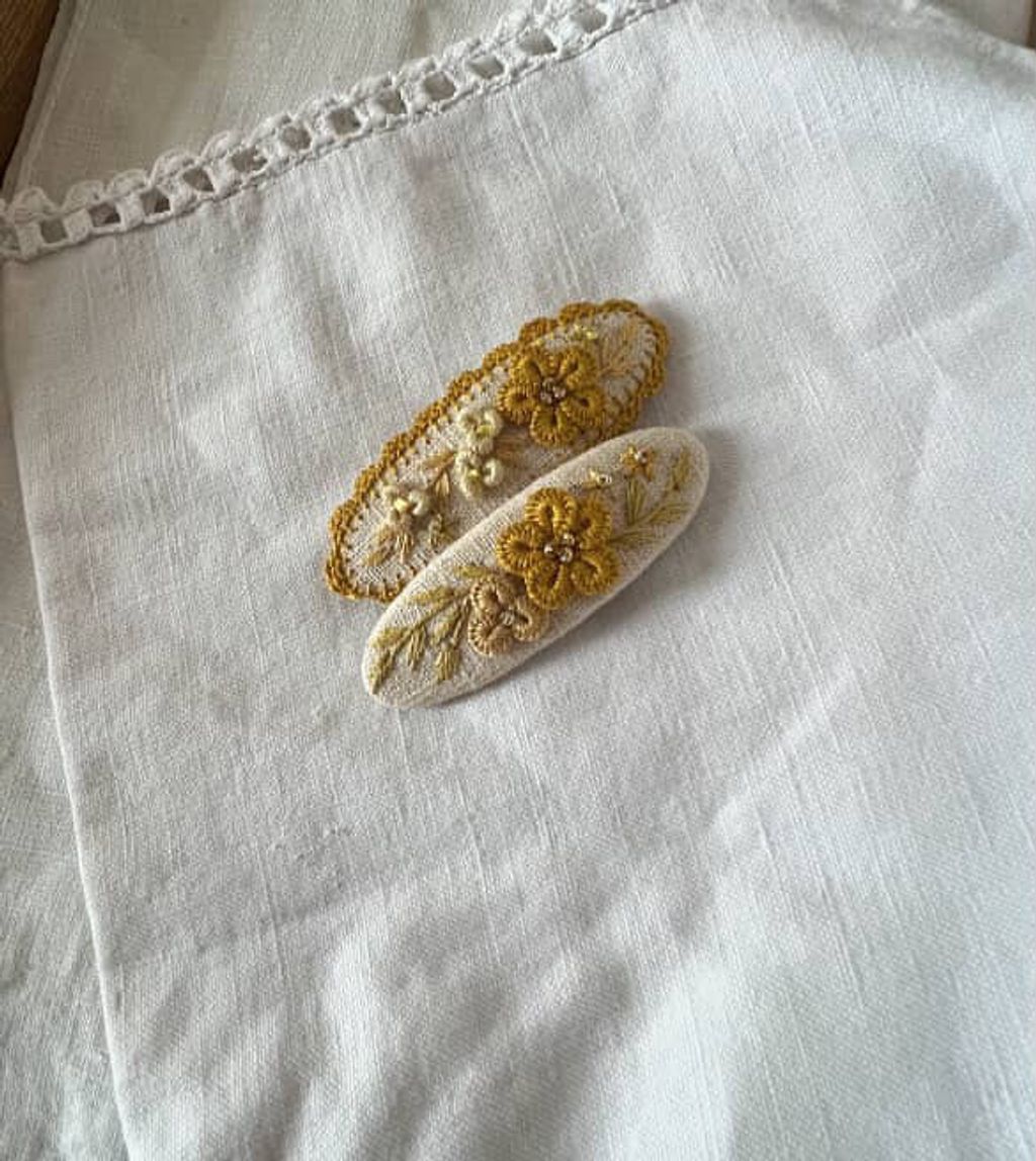 angela_bon - 布刺繡橢圓髮夾 New ✨:aw25
