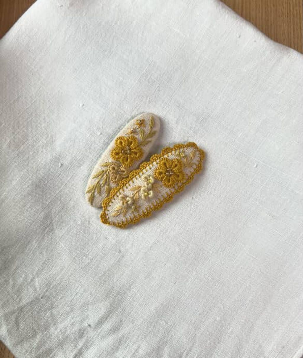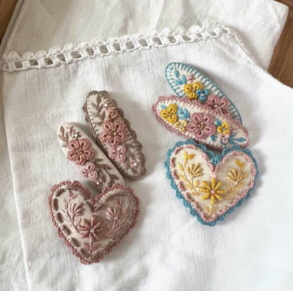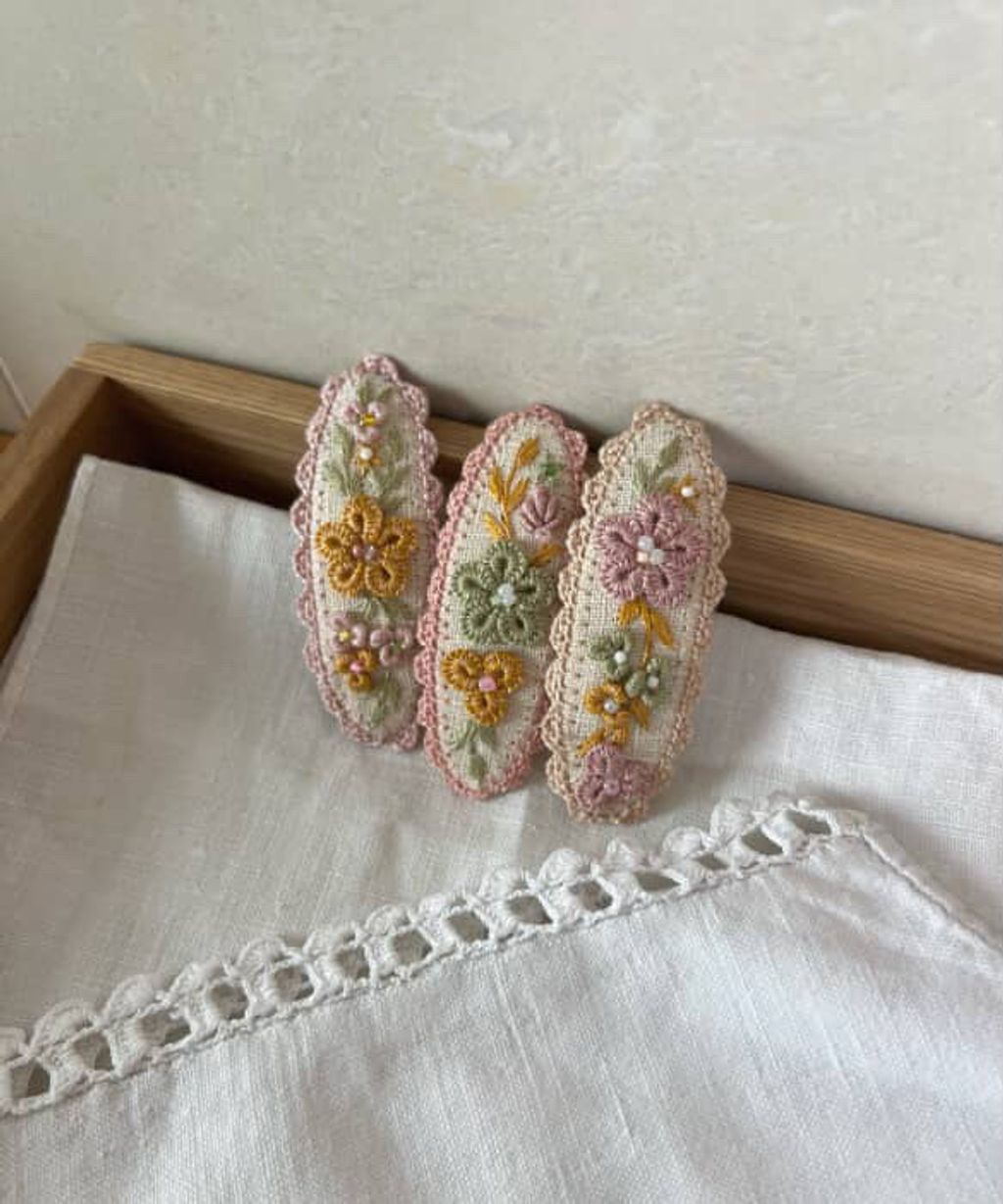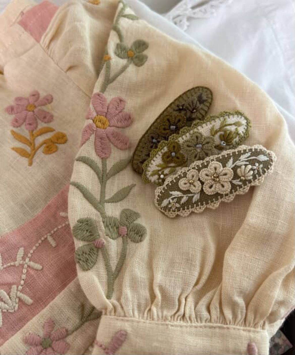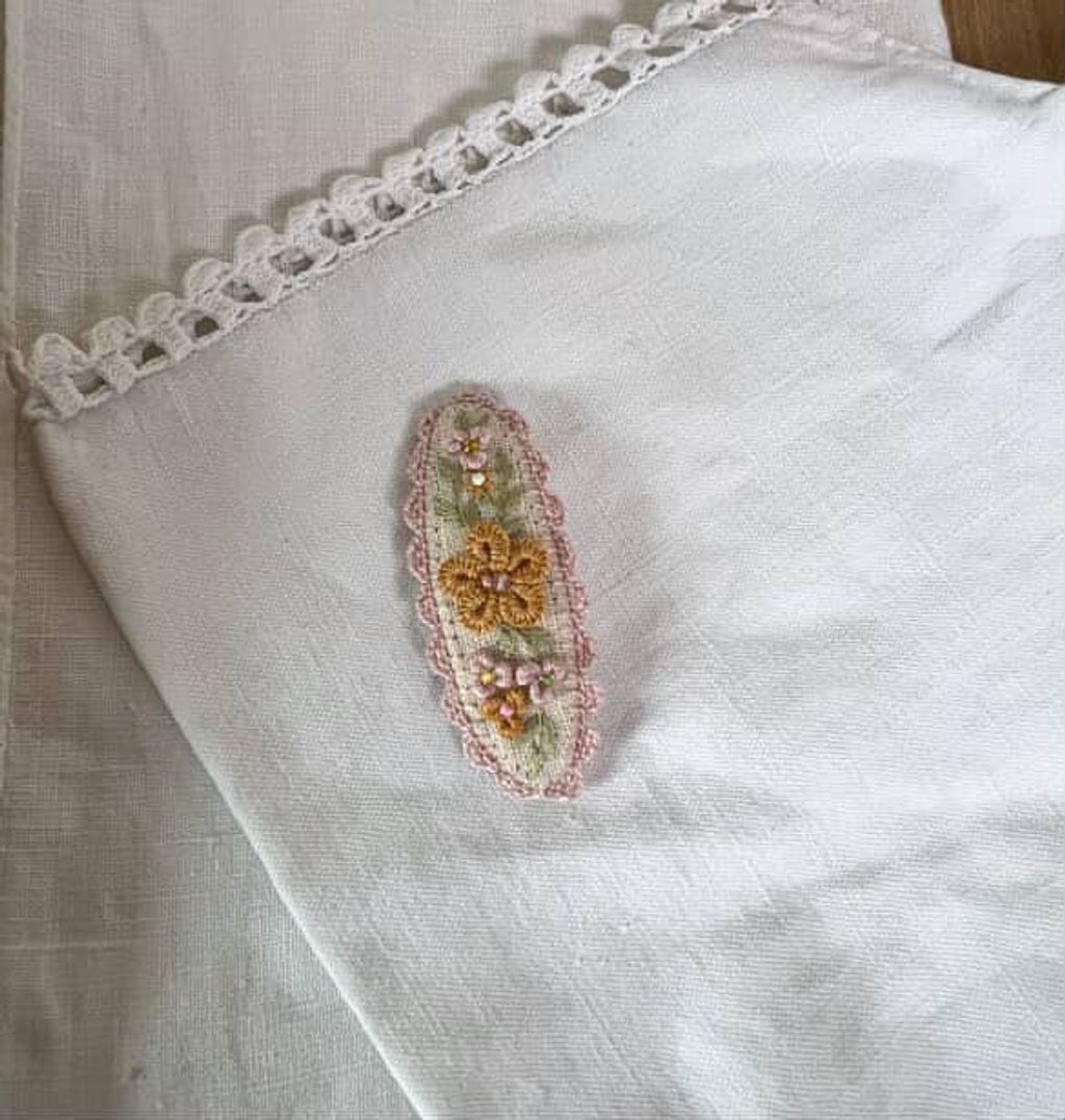 angela_bon - 布刺繡橢圓髮夾 New ✨:aw25