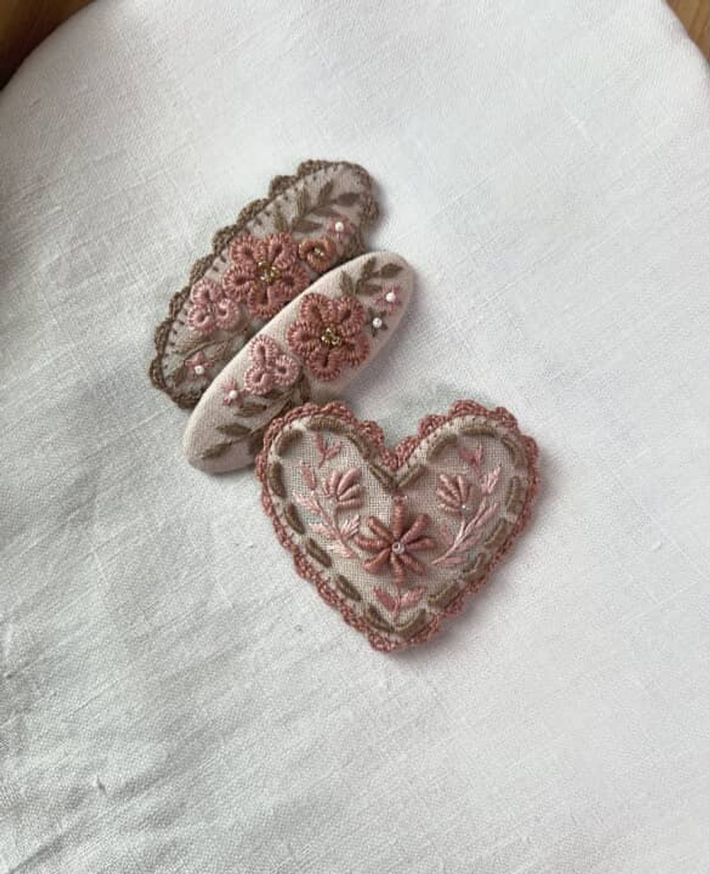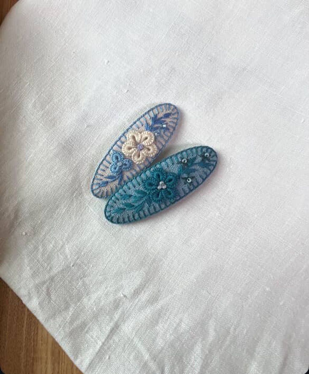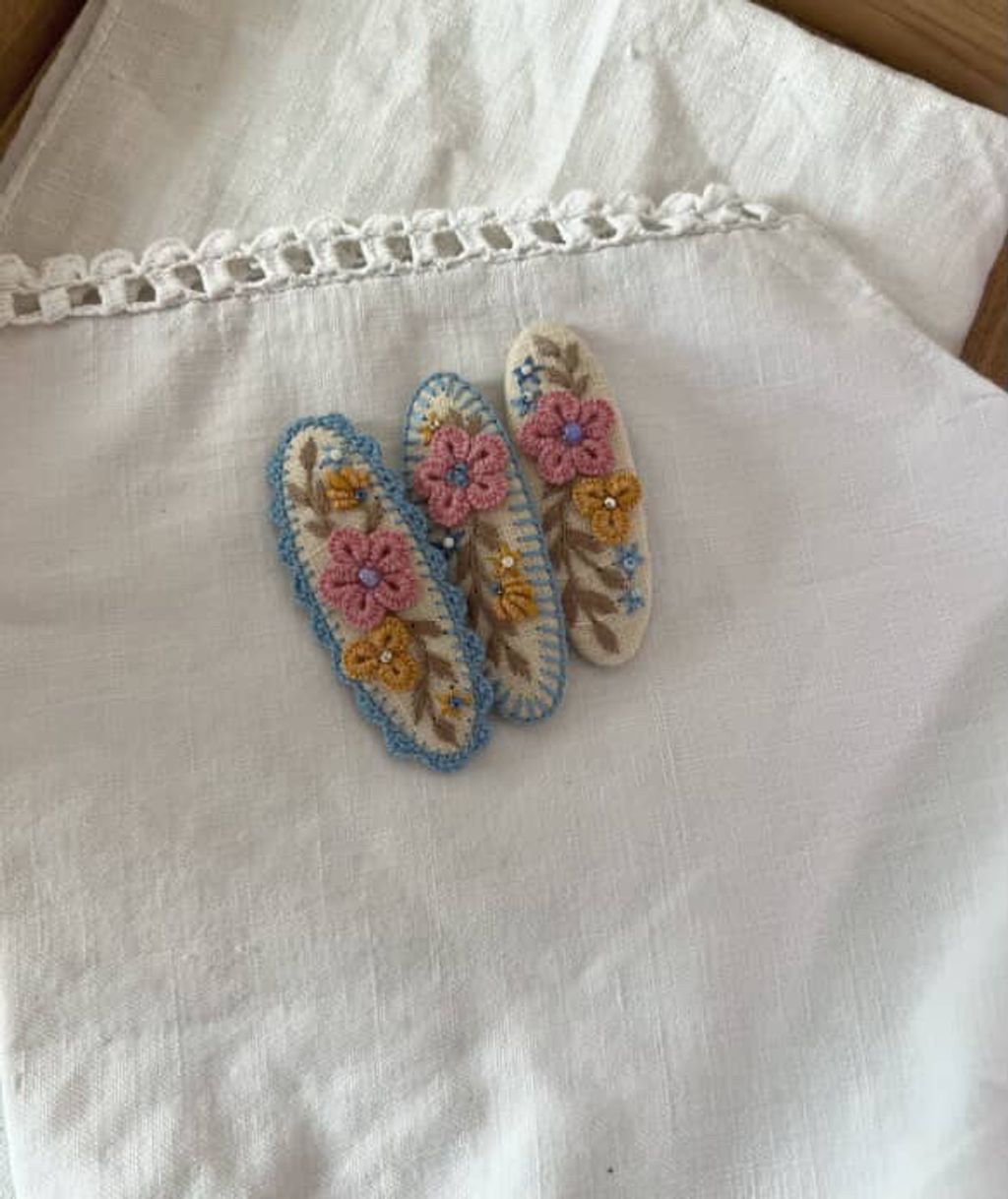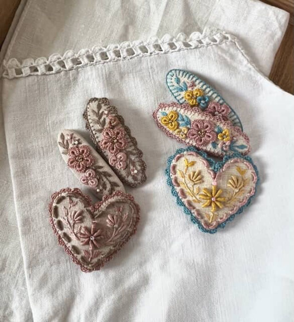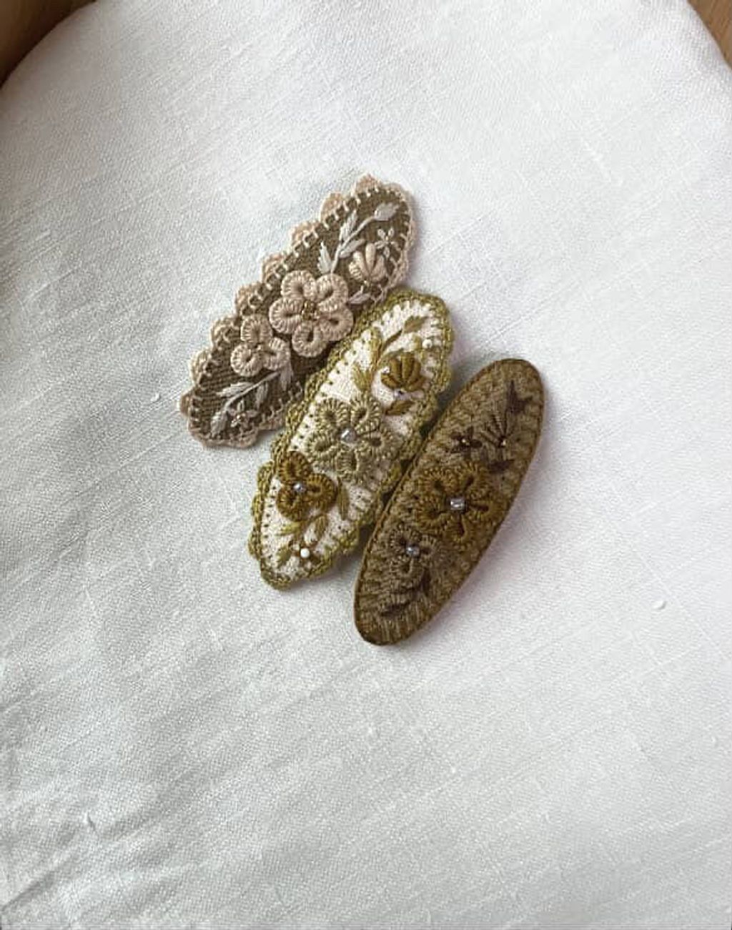 angela_bon - 布刺繡橢圓髮夾 New ✨:aw25