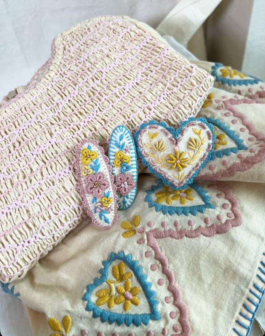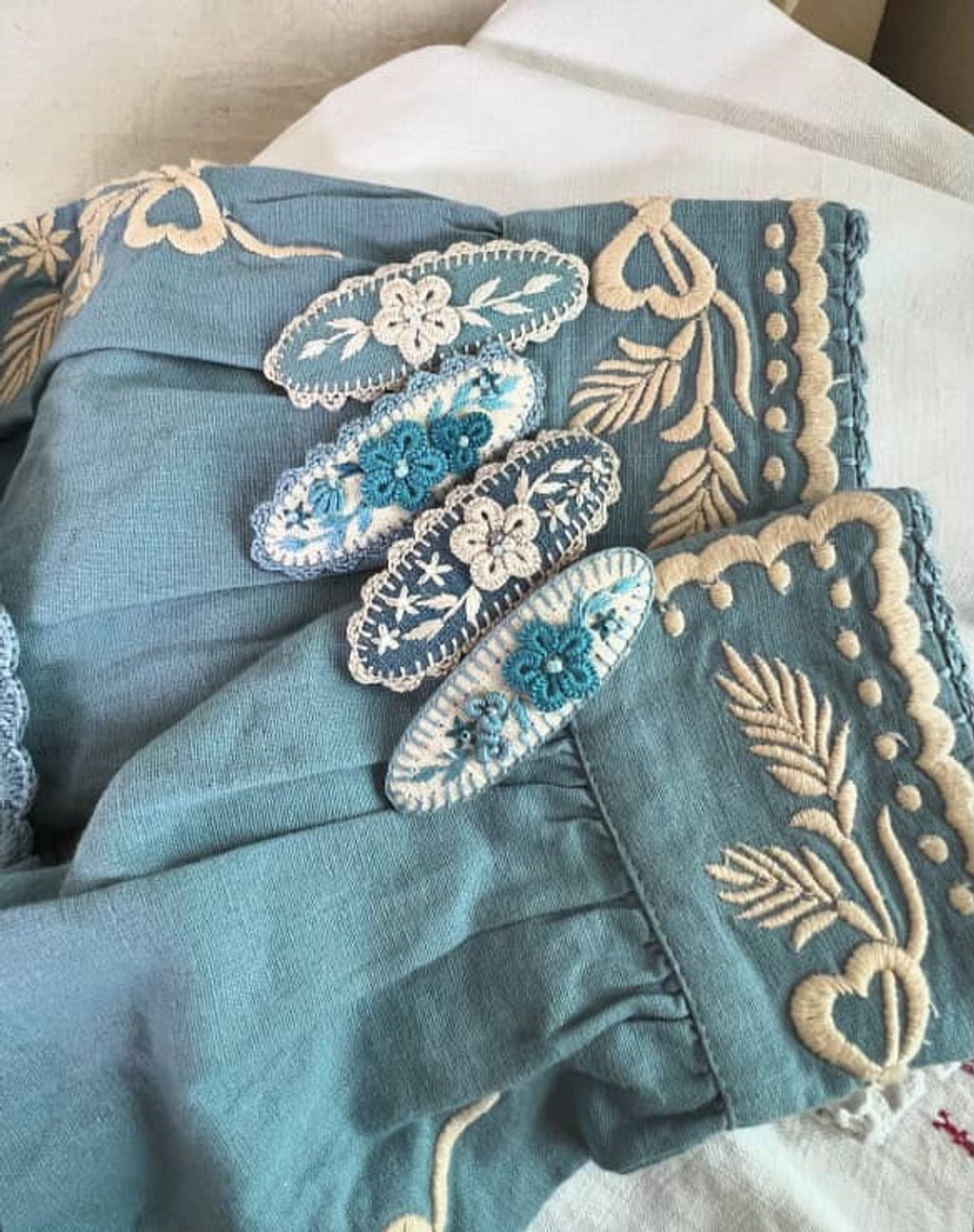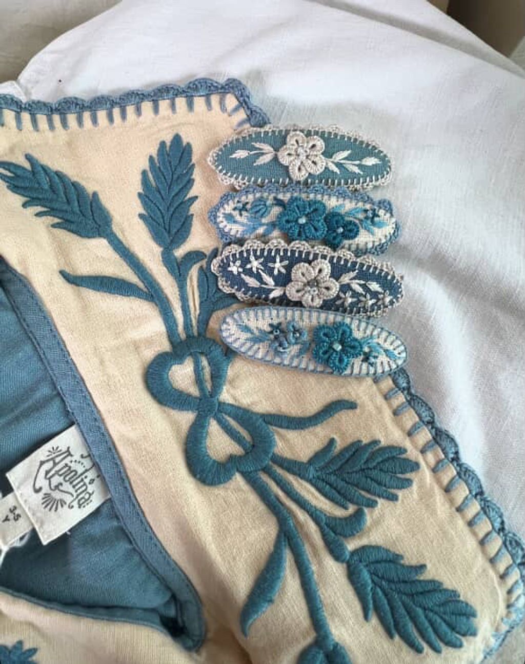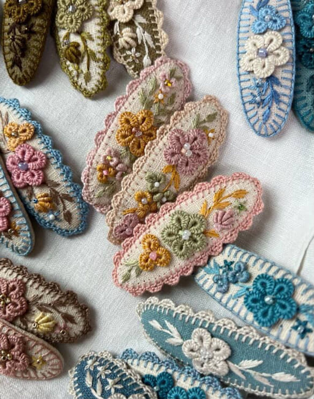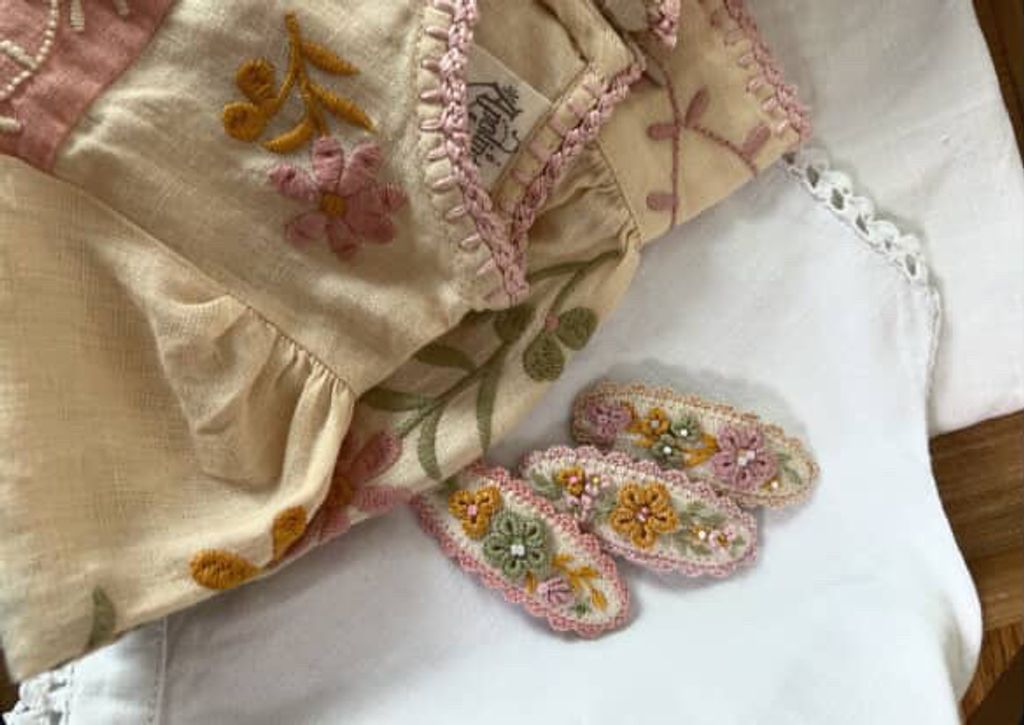 angela_bon - 布刺繡橢圓髮夾 New ✨:aw25