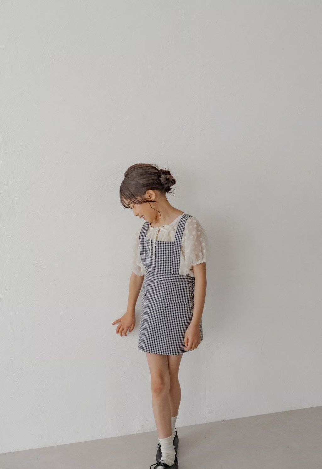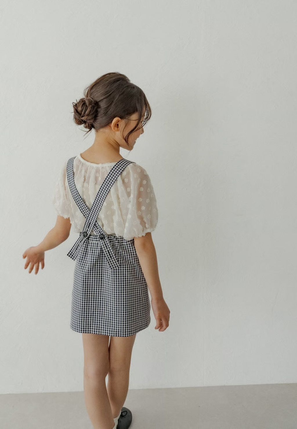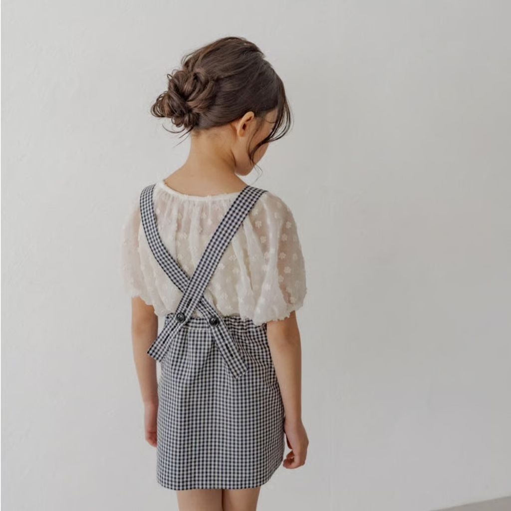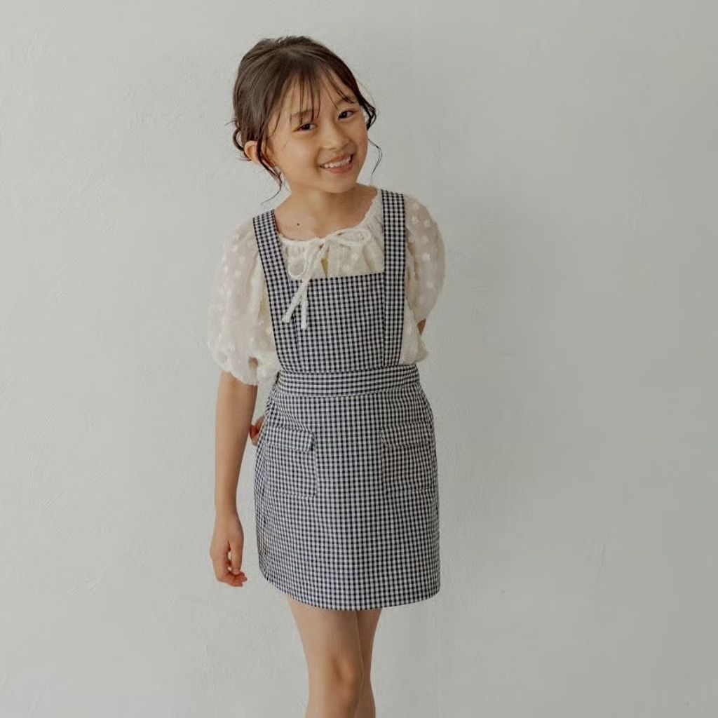 預購 - K du ciel - ciel salopette skirt:black gingham check