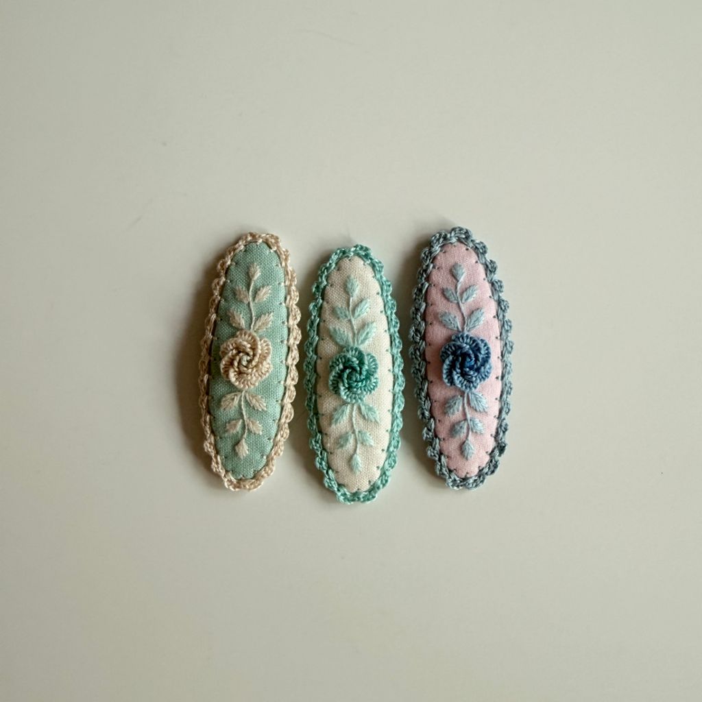預購 — me.n.little.me - 26ss 刺繡髮夾(橢圓)